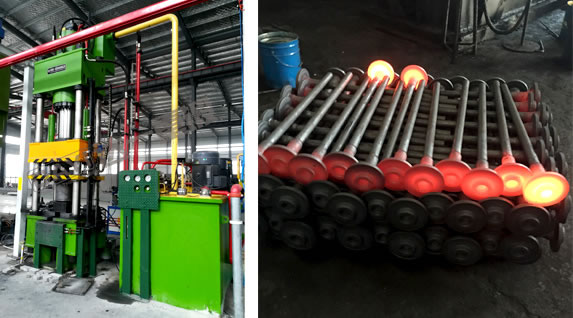 預(yù)墩機(jī)、擺輾鍛造機(jī)是我公司針對(duì)汽車半軸相關(guān)產(chǎn)品獨(dú)特開發(fā)的特種成形設(shè)備,是國(guó)內(nèi)先進(jìn)的節(jié)能、節(jié)材、少無切削及機(jī)電一體化的高科技?jí)毫Τ尚卧O(shè)備。該設(shè)備具有投資小、耗能低、易維修、操作簡(jiǎn)單等優(yōu)點(diǎn),輾壓力僅為常規(guī)鍛造的1/15-1/10,較普通鍛錘類設(shè)備具有效率高(提高3倍以上)、加工零件精度高、節(jié)約原材料、噪音低、振動(dòng)小等優(yōu)點(diǎn)。自擺輾鍛造機(jī)在我國(guó)正式生產(chǎn)和推廣以來,現(xiàn)已為汽車半軸等生產(chǎn)企業(yè)和必備鍛造制坯設(shè)備,并為我國(guó)汽車半軸的鍛造加工做出了巨大的貢獻(xiàn)。